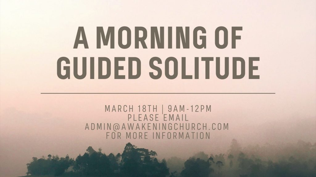 As Awakening Church is focusing on the words and actions of Jesus for 2023, we want to model the way of Jesus by stepping into one of his practices, intentional solitude and soul care. Ever wondered how to start? Join us for a morning of guided solitude that will allow us to gently step into the same footsteps of Jesus. March 18th from 9am-noon. Please email [email protected] to RSVP and receive the location!